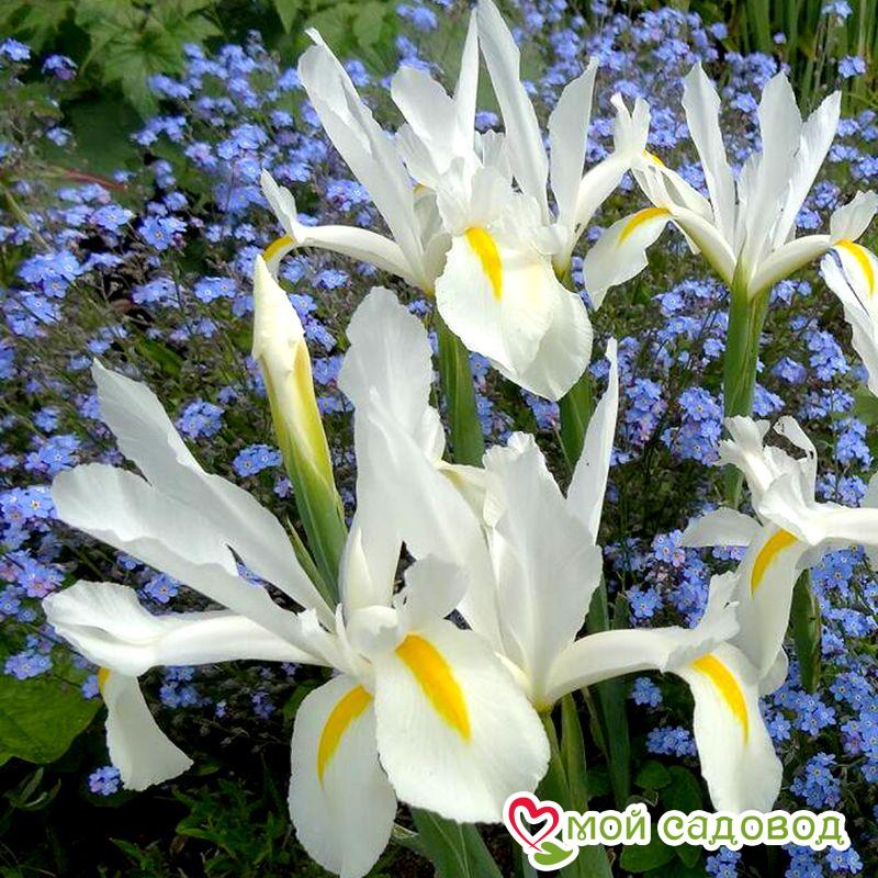 Это настоящее украшение любого сада. Сорт выведен в Голландии. Он стремительно завоевал признание многих цветоводов по всему миру. Ирис не требователен к уходу и необычайно вынослив. Купить недорого качественный посадочный материал можно в нашем интернет-магазине. Как выглядит растение? Цветки ириса Вайт отличаются средним размером и элегантной формой. Они имеют классическую структуру с шестью лепестками: три верхних, называемых стандартами, и три нижних, называемых фолиантами. Лепестки слегка загнуты назад и окрашены в белый цвет. Высота стебля около 50 – 60 см. Листья тонкие, прикрепленные к стеблю. Они узкие и длинные, окрашенные в зеленый, светло-зеленый или серо-зеленый цвет. Период цветения начинается в середине весны и длится несколько недель. Применение в ландшафтном дизайне Это великолепный выбор для создания элегантных композиций в саду. Белые соцветия добавляют участку нотки изысканности и романтики. Ирис Вайт может использоваться в различных композициях, таких как клумбы, рабатки, рокарии или водные сады. Он также прекрасно сочетается с другими цветами и растениями, что позволяет создавать гармоничные цветовые схемы и композиции. Советы по посадке и выращиванию Растение предпочитает открытое место. Для полноценного роста и развития данному сорту нужно 6 – 8 часов солнечного света в день. Почва подойдет рыхлая и плодородная. Перед посадкой удалите сорняки и обогатите землю органическими удобрениями или компостом. Убедитесь, что грунт имеет хороший дренаж, чтобы избежать задержки влаги. К посадочным работам приступают осенью или весной. Растения размещают на глубине около 10 – 15 см, с шагом 15 – 20 см друг от друга. Затем аккуратно засыпают почву вокруг корней и приподнимают растение, чтобы установить его на нужной глубине. Первое время молодые саженцы особенно нуждаются в регулярном поливе. Особенно во время сухих периодов. При этом важно избегать застоя воды, который приводит к гниению корней. Удалите увядшие цветы и сухие листья для поддержания эстетического вида и стимулирования нового цветения. Положительные качества ириса Вайт Данный сорт обладает рядом достоинств, которые делают его привлекательным выбором для садов и цветников: Красота цветков. Длительное цветение. Приятный и нежный аромат. Крепкий иммунитет. Легкость в уходе. Доступная цена. Купить недорого саженцы ирисов можно в интернет-магазине «Мой садовод». Просто отправьте понравившийся сорт в корзину, нажав на соответствующую кнопку. Мы бережно упакуем и максимально быстро доставим Вашу покупку ТК СДЭК или почтой России. Если возникнут вопросы или сложности с оформлением заказа, наши консультанты предоставят квалифицированную помощь. Мы гарантируем высокое качество посадочного материала и дорожим мнением каждого покупателя!